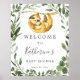 Welcome your baby shower guests with mummy baby sloth welcome sign, featuring watercolor greenery eucalyptus garland. Personalise with your baby shower details in simple and modern layout and elegant handwritten style font.