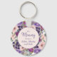 Purple and blush pink watercolor floral with sage green leaves keychain personalised for Mum with text, "This mummy belongs to ...children's names."