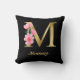 Check out this chic black throw pillow featuring a vintage flower M typography design in stunning gold. Add a touch of elegance and personality to any space with this stylish accent piece. The classic black background and intricate gold detailing make it a versatile choice for any decor style. Whether you're looking to spruce up your living room, bedroom, or office, this pillow is sure to make a statement. Embrace the timeless appeal of vintage-inspired decor and let this pillow be the perfect finishing touch to your space. Get ready to elevate your home decor game with this gorgeous throw pillow!