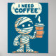 Mummy Halloween I Need Coffee Funny Sarcastic Caff Poster