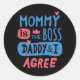 Mummy is the boss Daddy and I agree Classic Round Sticker