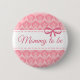 Cute pink and white bow and Damask pattern themed baby shower button that says, "Mum to be."