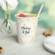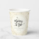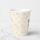 Mummy To Bee, baby shower paper cups. Pretty black script with cute watercolor honey bee accents and golden honeycomb pattern background on honey cream beige background colour.