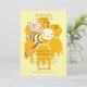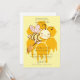 Mummy to be baby bee and honey dipper overlay on a dripping honeycomb baby shower invitation. Unique, bold and whimsical! Amber gold and pastel yellow.