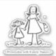 Mother and daughter hold hands. The woman's dress reads "mummy" and the little girl's dress reads "me". This parent and child family picture also comes in multiple ethnic family options including a simple line drawing. The words of "Mummy's Girl" are above the happy family. Personalise the family sticker decals with family names or a personal message for a special mother or mummy and daughter decal gifts! You can make custom family stickers for a special Mother's Day gift, new Mummy and/or new baby, Family Reunion or other customised family art gifts!