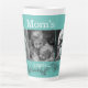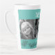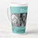 Mum's Angels 3 Photo Latte Mug. Sunflower Border. Turquoise background. Black and White applied to photos.
