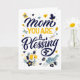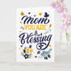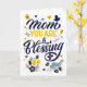 Bold and brightly cheerful birthday card for Mum in flowery bouquets and bits that are paired with lovely typography and butterfly, dragonfly and leafy accents in yellow and blue on white.