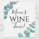 These fun wine bottle labels are decorated with watercolor eucalyptus leaves and the words "Mum's Wine Time!"