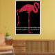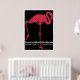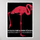 This vintage advertising poster is for the Munich Zoological Garden. It's a black power with a large pink flamingo and white lettering that dates make to the early 1900s