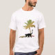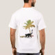 Munkey on the beach with a palm tree in the background in earthy tones.