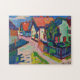 Murnau (1908) by Wassily Kandinsky is a captivating piece that marks an important phase in the artist's journey towards abstraction. The painting is a landscape of the town of Murnau, located in Bavaria, which was a source of inspiration for Kandinsky. It blends vivid colours and bold brushstrokes, creating an almost dreamlike scene that captures the emotional resonance of the place rather than its literal representation. Kandinsky's transition from representational art to abstraction is reflected here, where forms and colours are used to evoke mood and atmosphere rather than depict realistic details.