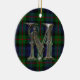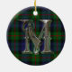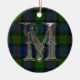Ornate monogram letter M ornament, with the Murray clan tartan plaid as a background. Great looking family heirloom ornament. Makes a great gift ornament and decoration for other uses around the house.