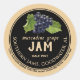 Watercolor muscadine grape illustration on black with kraft border; date and ingredients