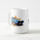 This ceramic coffee mug is shown in a muscle car art print.