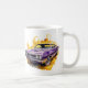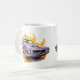 This ceramic coffee mug is shown in a muscle car art print.