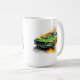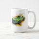 This ceramic coffee mug is shown in a muscle car art print.