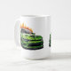This ceramic coffee mug is shown in a muscle car art print.