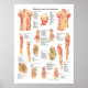 Created with vintage anatomy images. Shows over 80 labeled muscles of the human body including cross sections of the elbow, shoulder and knee joints. Anterior and poster views of the torso, arm, hand and leg.