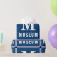 At the heart of this wrapping paper is a striking capital letter "M" suspended gracefully above the word "museum." The elegant font and rich, contrasting colours give it an air of sophistication that's sure to capture the recipient's attention.