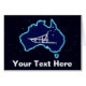A simple white silhouette of a dog sled and the Southern Cross superimposed on a blue map of Australia. All on a starfield background. Who would have thunk it? Mushing upside down in Oz. Dog sledding is quite popular in Australia. At Mount Hotham in Victoria there is a big race every year.