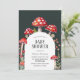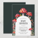 Baby Shower invitation featuring an arched frame of watercolor mushrooms. Customise with your information for the mum to be. Click "click to customise further" to change the font style, size or colour.