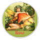 Blue-eyed blonde fairy hugging a big amanita mushroom to customise with your own greeting, name, message, etc