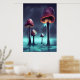 Mushroom growing in the sea, with trees in the background. This is a AI generated art.