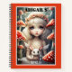 A cute colourful notebook featuring an illustration of a fairy girl with an angel rabbit surrounded by magical mushrooms. On the back is a simple retro polka dot design on your custom colour background. A whimsical heartwarming gift.