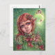 Mushroom Mood, funny whimsical moody elf girl, big eyes cute face, toadstool mushroom, moon night, magic wand, green nature, traditionally hand drawn fantasy fairytale illustration by Christine Karron