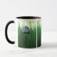 Wild mushroom growing amongst the grass. Repeated 3 times around the mug.