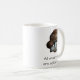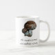 Photograph of cremini mushrooms (small portabella mushrooms) with the words "All mushrooms are edible-once." printed below. Design on both sides of mug.