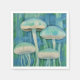 Watercolor effect digital art, showing stylised mushrooms in blue and green tones.