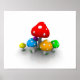 Poster of some very coloful mushrooms on a white background.