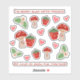 "I'm berry glad we're friends!" "We have so mush fun together!" These hand painted strawberry and mushroom designs will add a touch of sweetness to your Valentine's Day. Mushroom and strawberry friends, strawberry blossoms and leaves, and pink hearts are the perfect way to decorate a bullet journal, February calendar page, DIY Valentine, or just give the sticker sheets as a valentine party favour or classroom prize! Vibrant red, green, and ivory artwork.