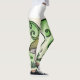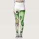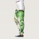 Mushrooms in the swirly mossy forest, green watercolor, black line and stippling, on a pair of leggings.