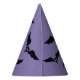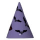 A cute cartoon vampire mushroom, with a black cap, red spots, and tiny fungal fangs. They are surrounded by vampire batshrooms on a purple background.
