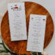 Rustic wedding program featuring watercolor illustration of mushrooms and moths. Wedding ceremony information and the wedding party's names are listed on this program.