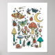 Mushrooms and Bugs Night Forest Kids Room Poster
