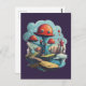 Portcard with illustration of a surreal place full of mushrooms in psychedelic fantasy style for lovers of crazy girly aesthetics