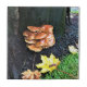 A very unique autumn scene with a cluster of mushrooms growing at the base of a tree & colourful leaves surrounding them on the ground. Photo taken October 2017, in my neighbourhood of Wilsonville, Oregon.
