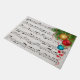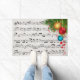 Sheet music with Christmas ornaments, green pine, and ribbon.