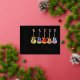 Music themed cool colourful Christmas guitar happy holidays black and gold festive greeting card. Let’s rock and roll this festive season with these fun, colourful jazzy, guitars wearing Santa hats. Acoustic guitars, electric guitars and semi acoustic guitars psychedelic colourful designs to bring holiday cheer to your guitarist musician friends and budding rock stars. This funny musical instrument Happy Holidays card can be easily personalised using the templates. Original artwork by artist Catherine Sweetman