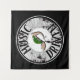 Awesome, fun music message, with a chameleon holding on to a musical note placed on a distressed vinyl record background . For all music lovers in the our universe.