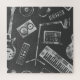 music, pattern, production, seamless, dj, vintage, illustration, piano, guitar, symbol, microphone, keyboard, sound, record, equipment, background, silhouette, amplifier, audio, grunge