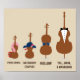 Funny violin, viola, cello and string bass instruments with music humor quotes.