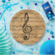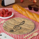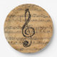 Paper party plates with image of a vintage sheet of music and a musical note.