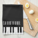 This design is for music lovers young and old. This kitchen towel features a simple and elegant design with a piano keyboard. Above the keyboard the text reads "Music Is A Thing Of Beauty." The black background can be customised. This design appears on the top and bottom half of the towel.