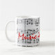 Tea, please! Choral piece of sheet music isolated on a white background. Music is my Life in red text overlaying. Strong black white and red musicians themed piece. Change text to your name or text!