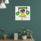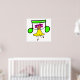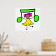 Cute cartoon whimsical illustration of a happy little stick figure girl holding a giant musical symbol. Easily customise and choose your own background colour or add text. Image available on various gifts and products.
