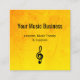Music lessons business card, with a gold design and a treble clef symbol. With black customisable lettering, you customise with your own information. You also add your website to allow for connection with a QR code. Great for promoting your musical performing and teaching.